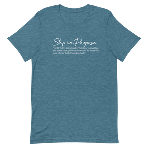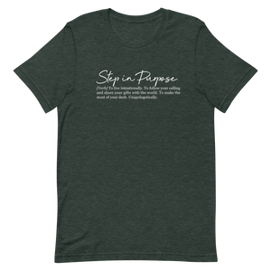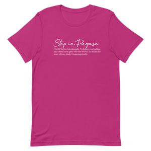 Step In Purpose [Verb] To live intentionally. To follow your calling and share your gifts with the world. To make the most of your dash. Unapologetically.
